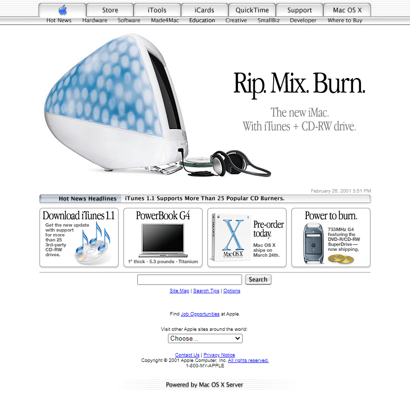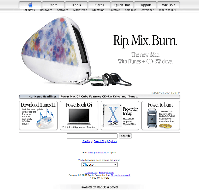 Do you remember iPod or Power Mac G4? Enjoy a walk down digital memory lane and let's remember the Apple homepage evolution in 2001.