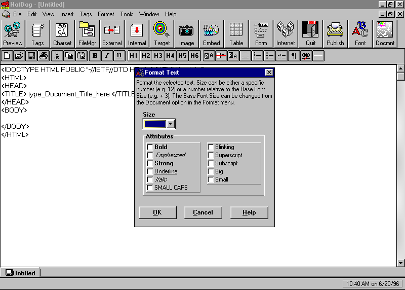 The program supported HTML 2.0, tables, forms, and the Netscape extensions available at its time of release, and boasted support for the proposed HTML 3.0. HotDog Pro included more features, such as expanded customization options, spellcheck capabilities, and unlimited file sizes.